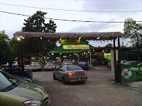 Rupanya telah ramai pengunjung yang dah sampai lebih awal dari kami. Nasib baik tempatnya luas, ada tempat duduk open air, ada yang berbumbung dan kalau yang "slim" tu nak duduk bersila pun boleh, ada wakaf yang di sediakan. Memandangkan badan aku ni "comel" so terkpaksalah pilih tempat duduk yang berkerusi dan berbumbung, alasannya simple - "you know I knowlah" keh keh keh